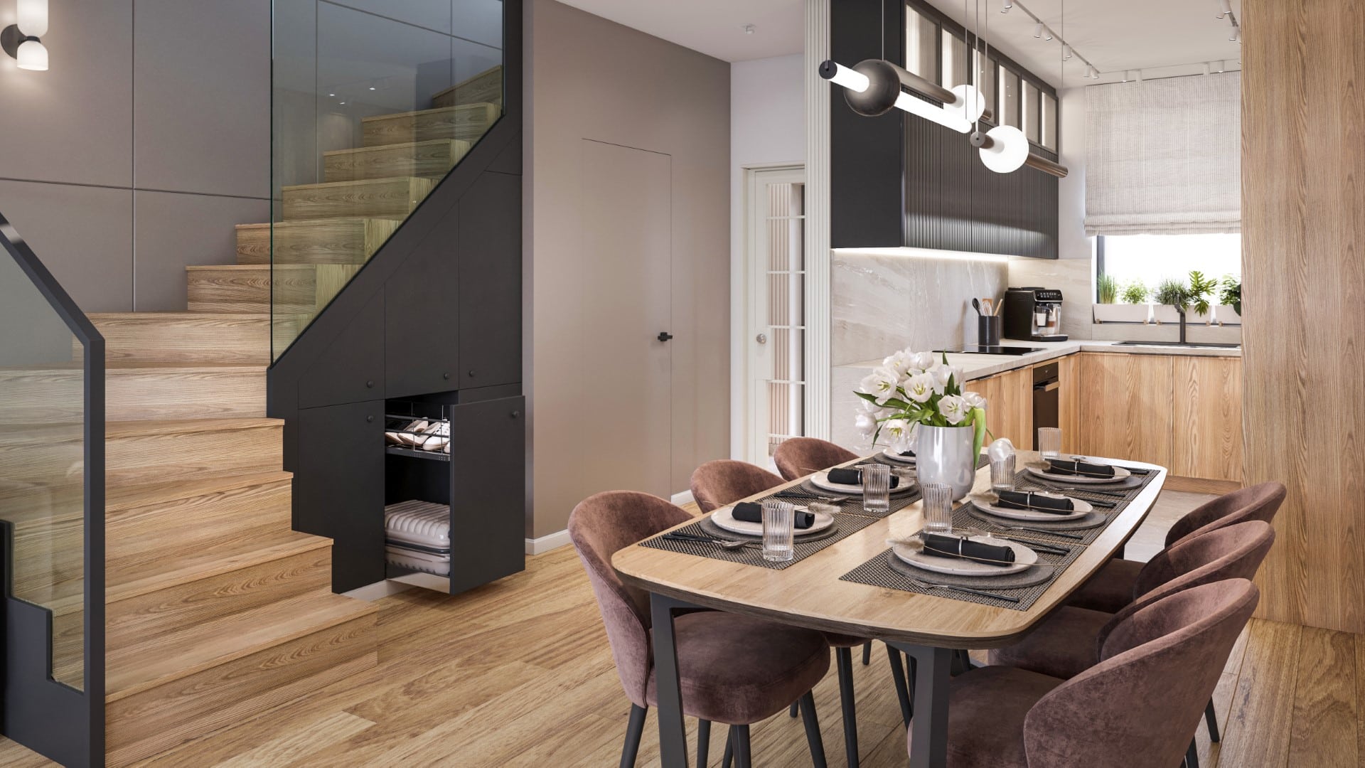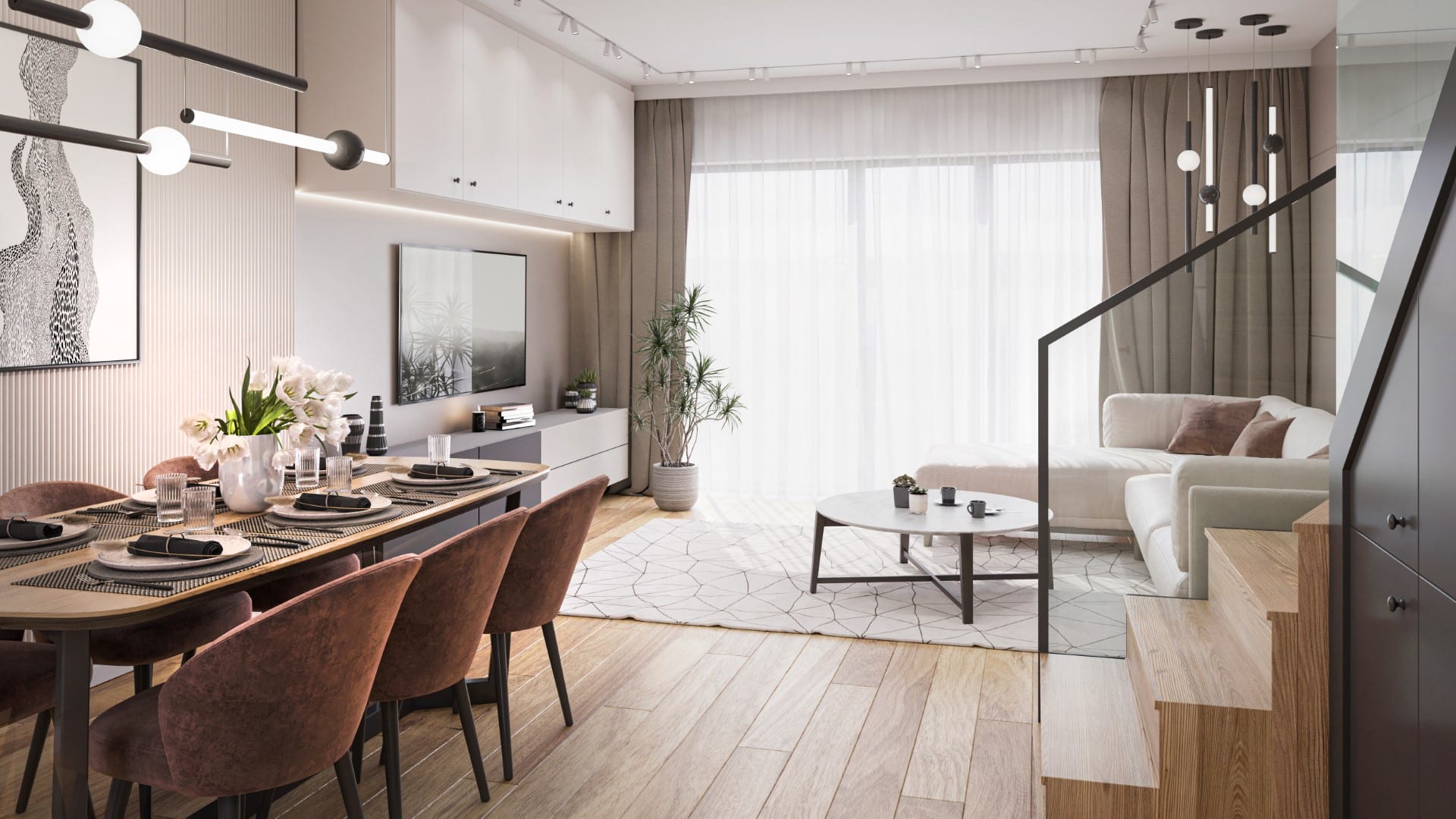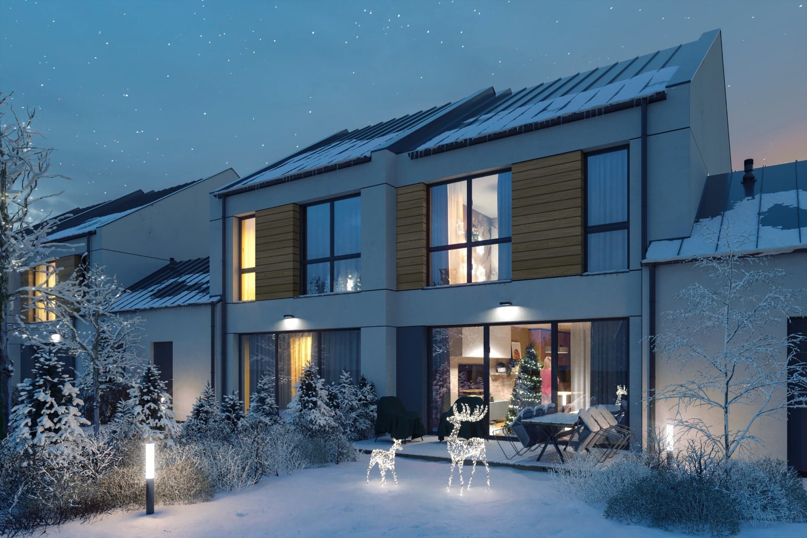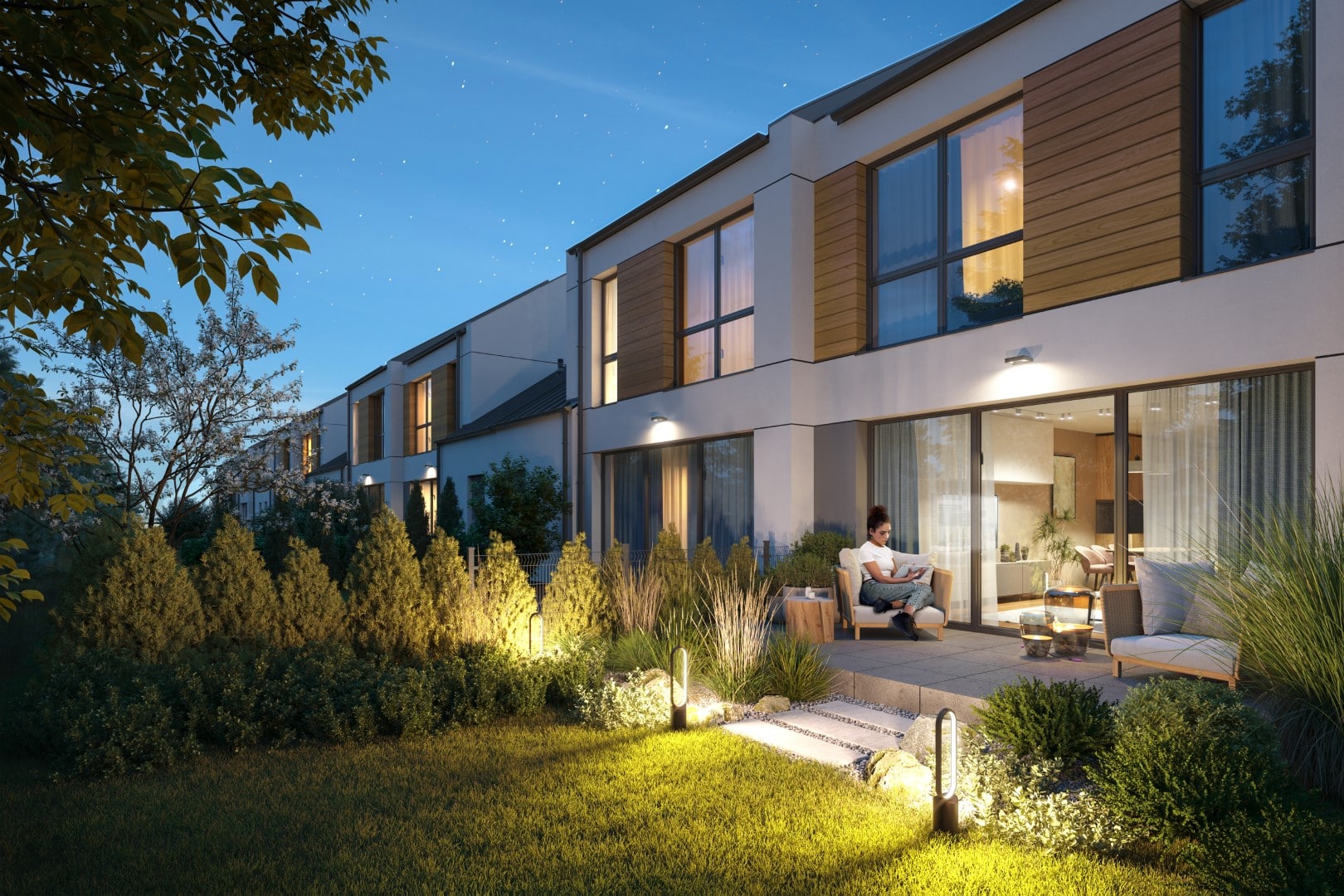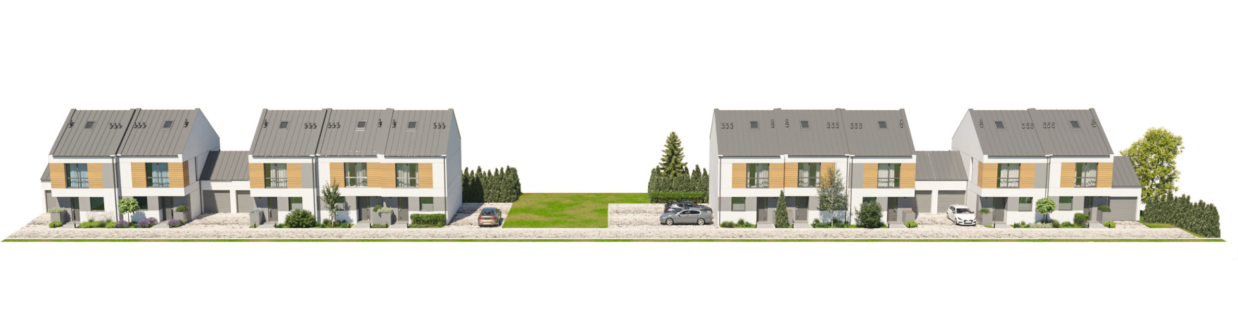 I etap obejmuje budowę ośmiu budynków mieszkalnych o charakterze zabudowy bliźniaczej. Każdy segment posiada indywidualny ogród, garaż i miejsce postojowe oraz funkcjonalne poddasze do aranżacji.